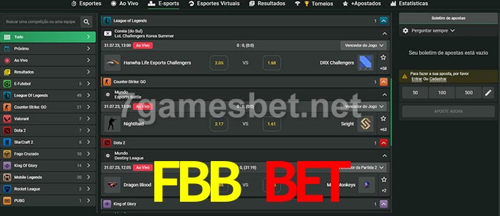 O FBB Bet oferece uma grande seleção de opções de apostas em e-sports com probabilidades competitivas